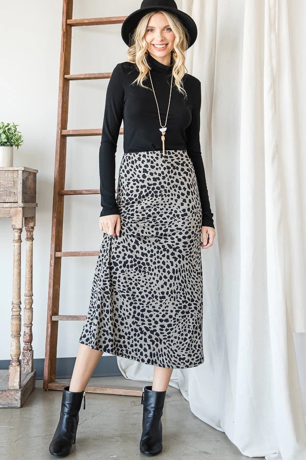 Olive Animal Print Midi Skirt