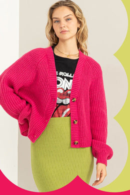 Fuschia Ribbed Button up Cardigan