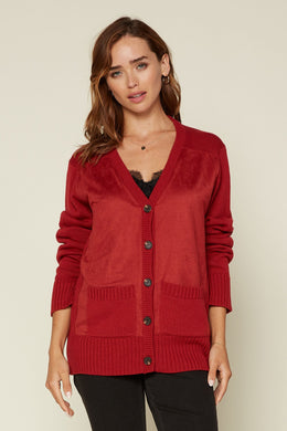 Rust Suede Contrast Knit Cardigan