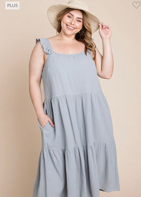 Silver Blue Cotton Gauze Ruffle Tank Tiered Dress