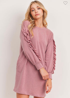 Mauve Rounded Hems Ruffle Sleeve Detail Solid Dress