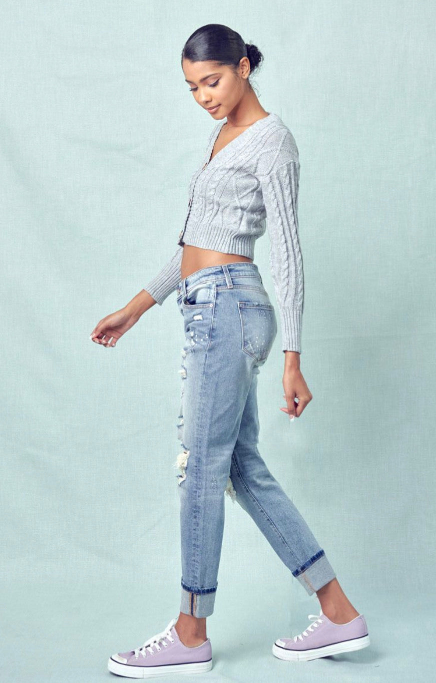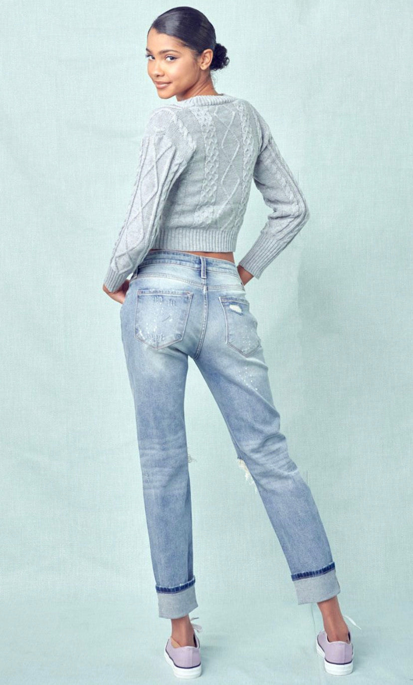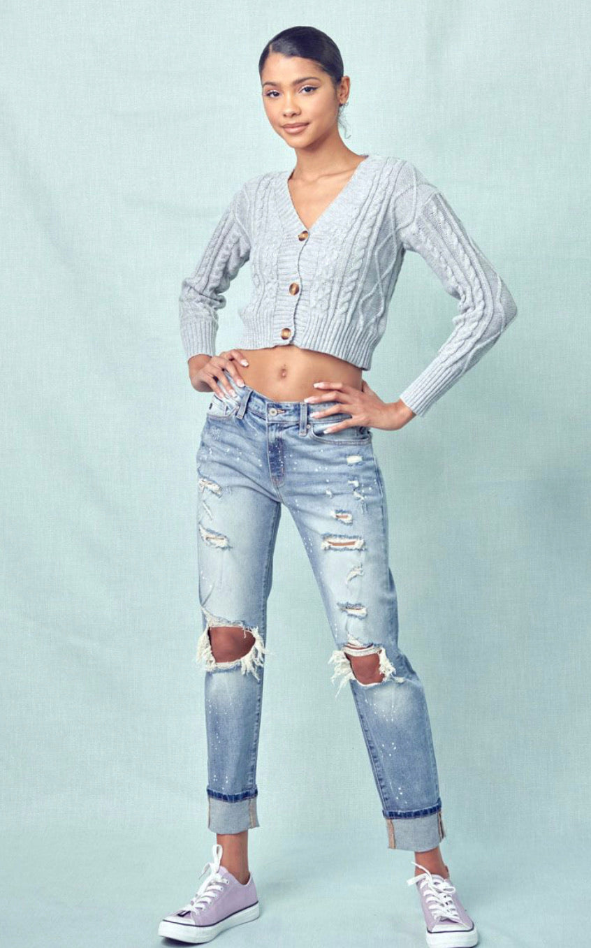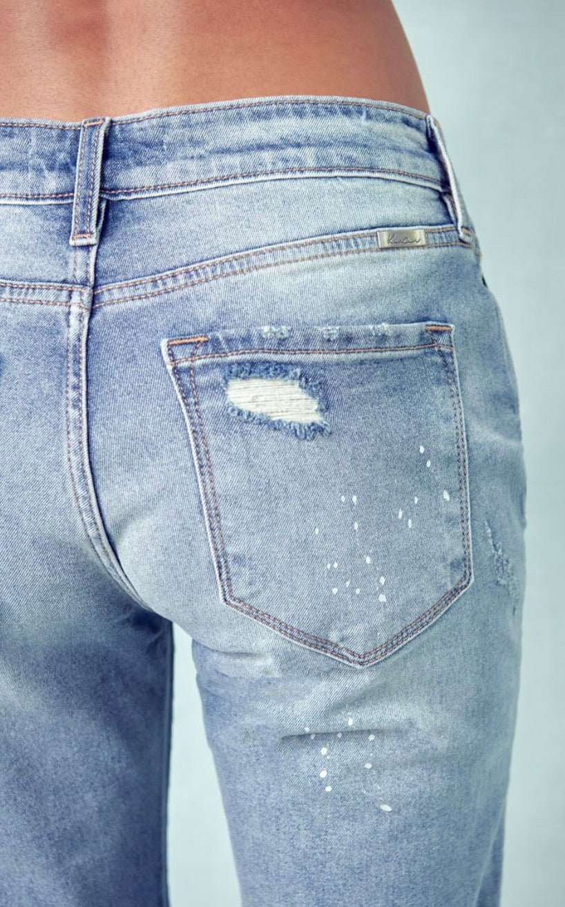 Kancan Destroyed Paint Splash High Rise Boyfriend Jean