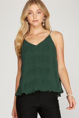 Off White Sleeveless Front Tie Button Up Waffle Top