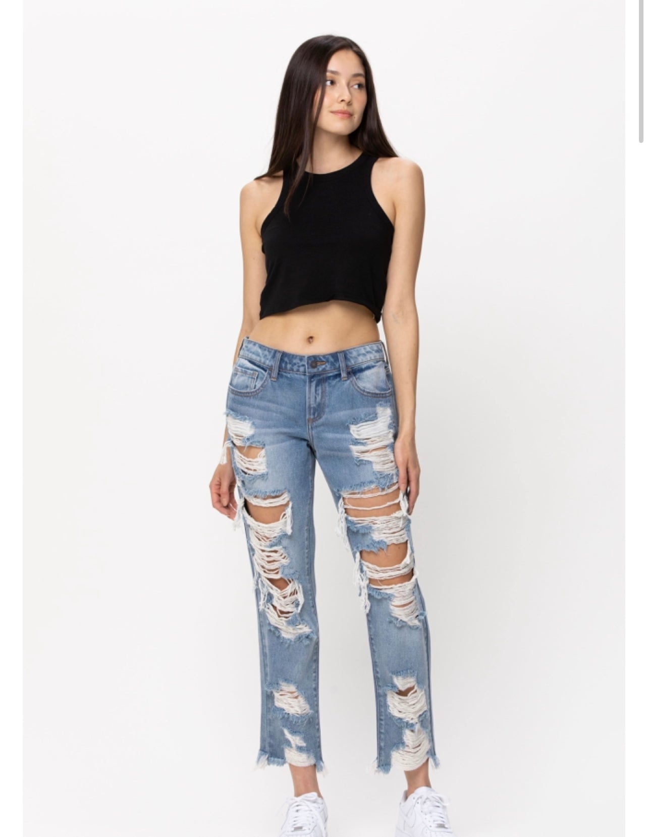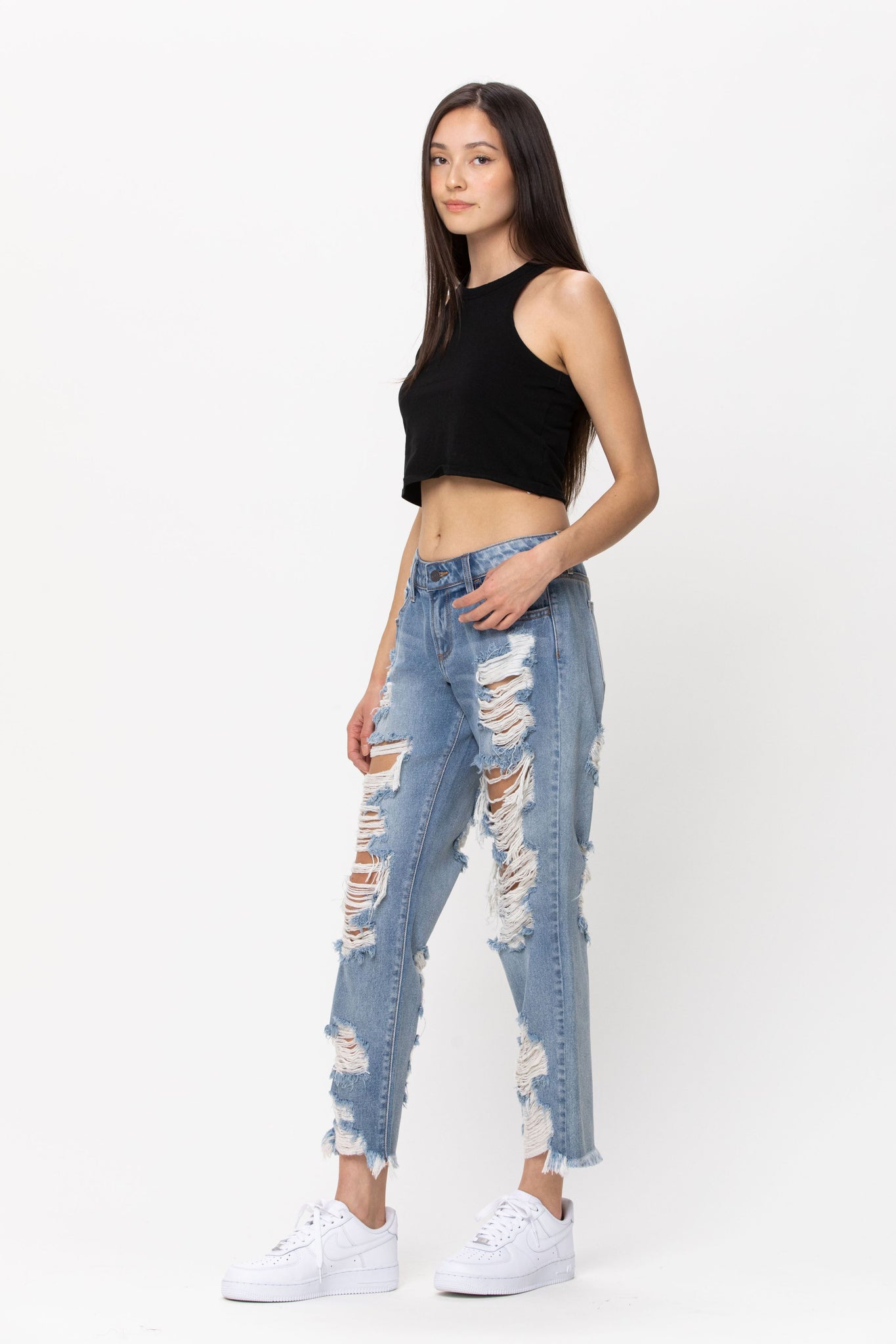 Mid Rise Heavy Destroy Raw Cut Hem Boyfriend