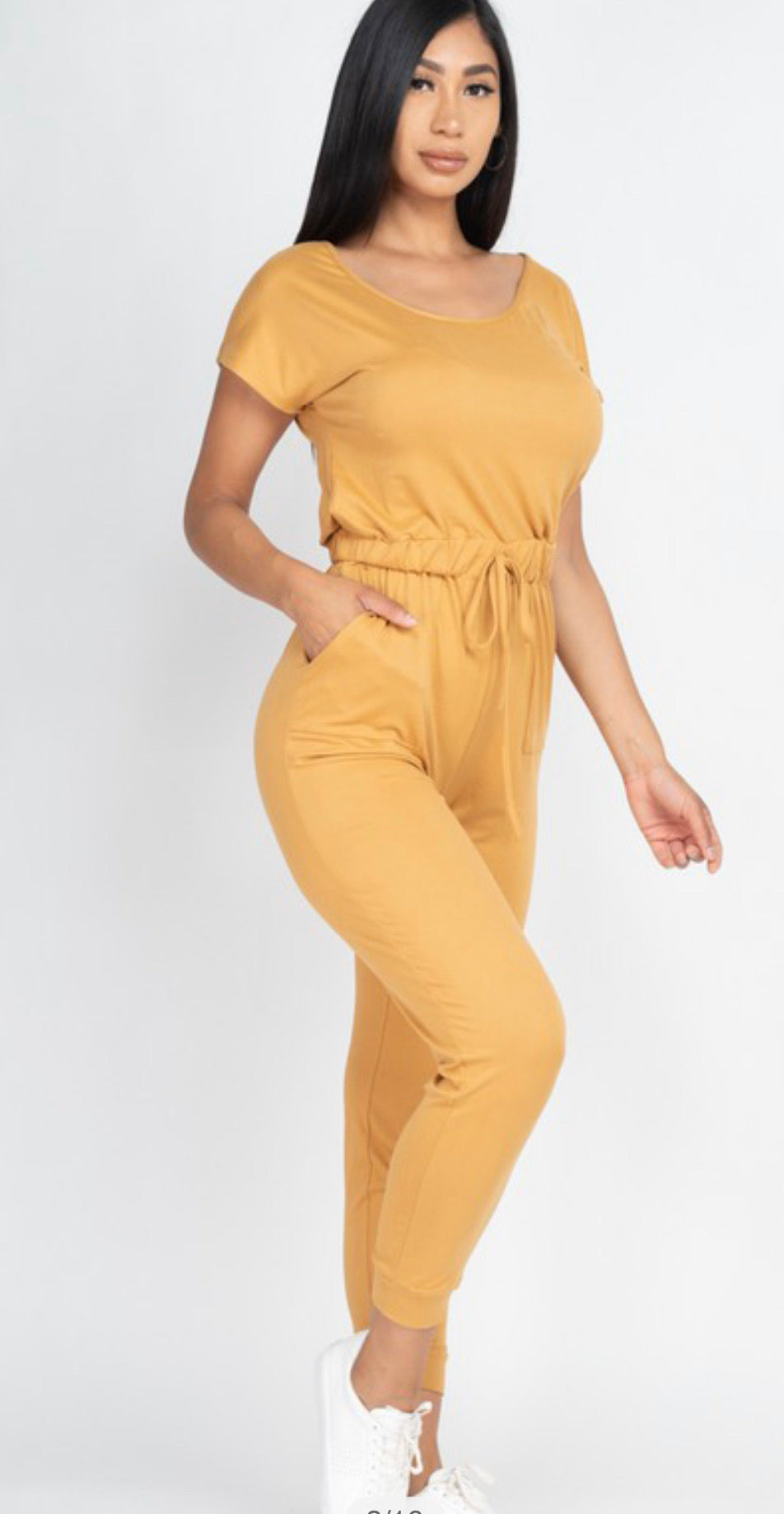 Two-Way Shoulder Drawstring Jumpsuit- Camel